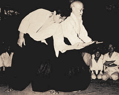 Den Aikido som O-Sensei trænede og underviste i var baseret på det koncept som hedder ”riai” – en treenighed af aiki-ken, aiki-jo og taijutsu. Tai jutsu teknikkerne blev undervist i systematisk form, og med fokus på tre niveauer af udførsel: kihon (basis),awase (fleksibel) og ki no nagare (flydende). Der blev lagt megen vægt på våbentræningen som en uadskillelig del af Aikido.